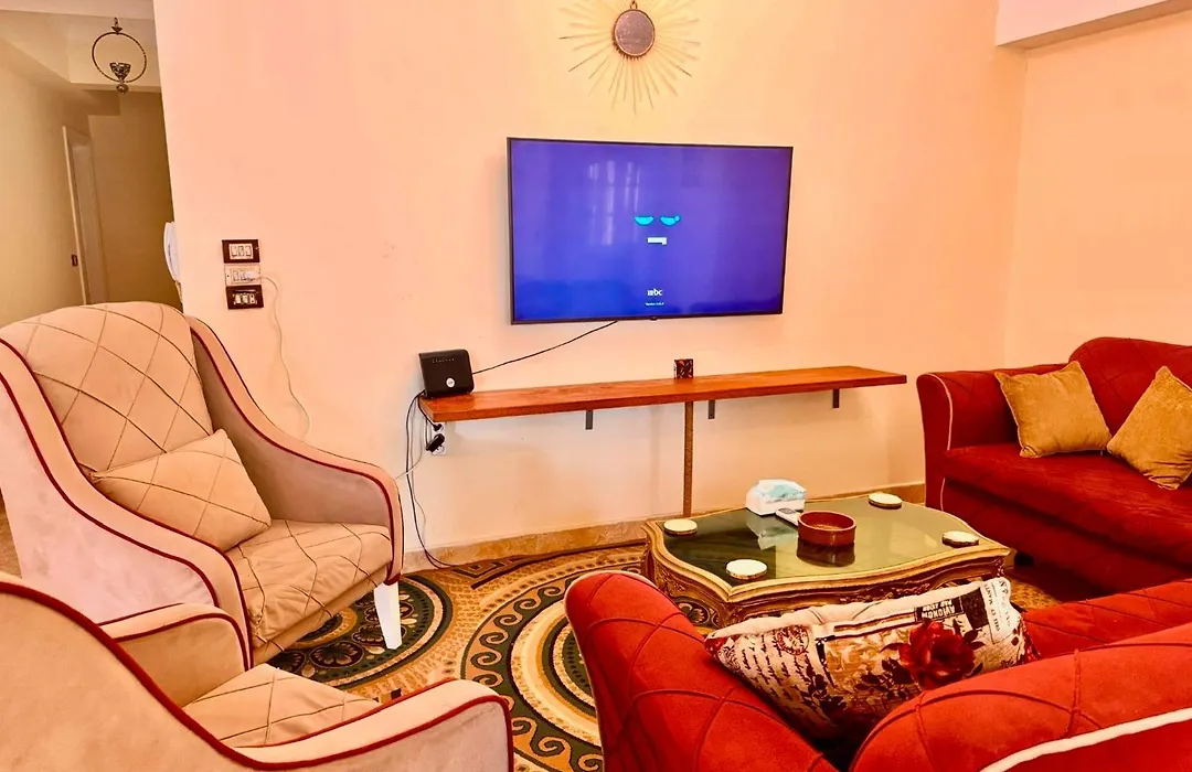 يتم تلبية احتياجات الخدمة الذاتية من خلال المطبخ المجهز بالكامل الذي يشتمل على المايكرويف وثلاجة. وتقع الشقة على بُعد 30 دقيقة بالسيارة من محطة قطار El Giza.